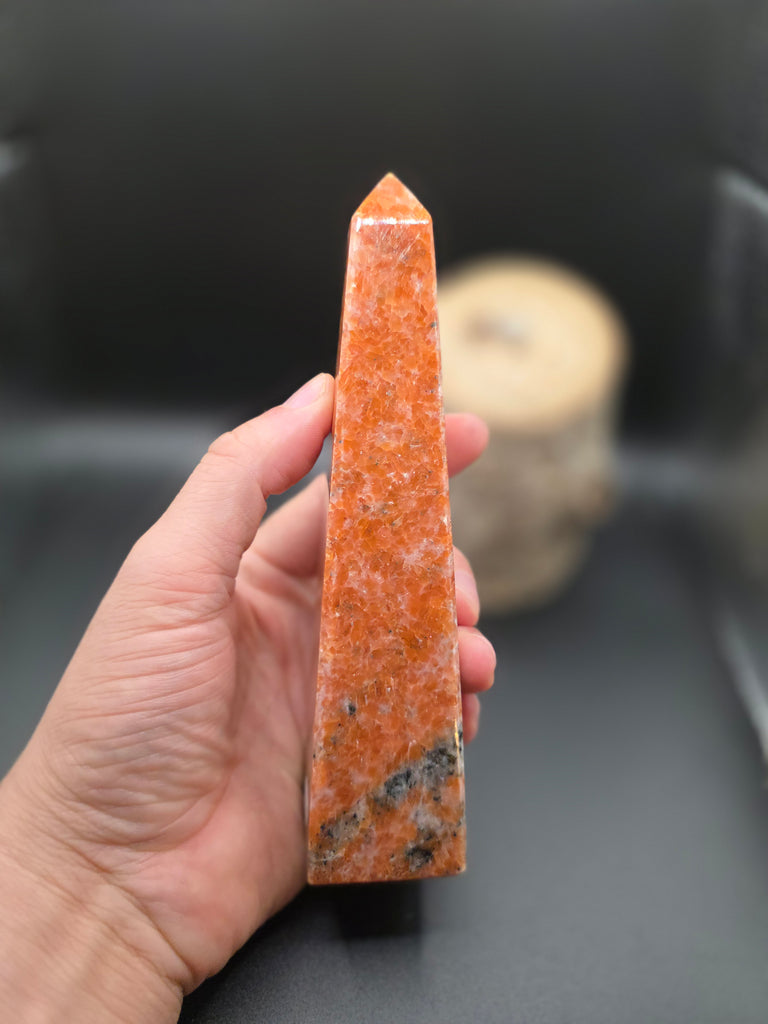 Orange Calcite Tower with a very nice orange color that sparkles with the light.
